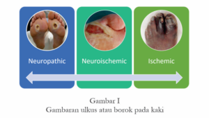 - Munculnya ulkus atau borok pada area kaki yang menjadi tumpuan atau jari-jari kaki.